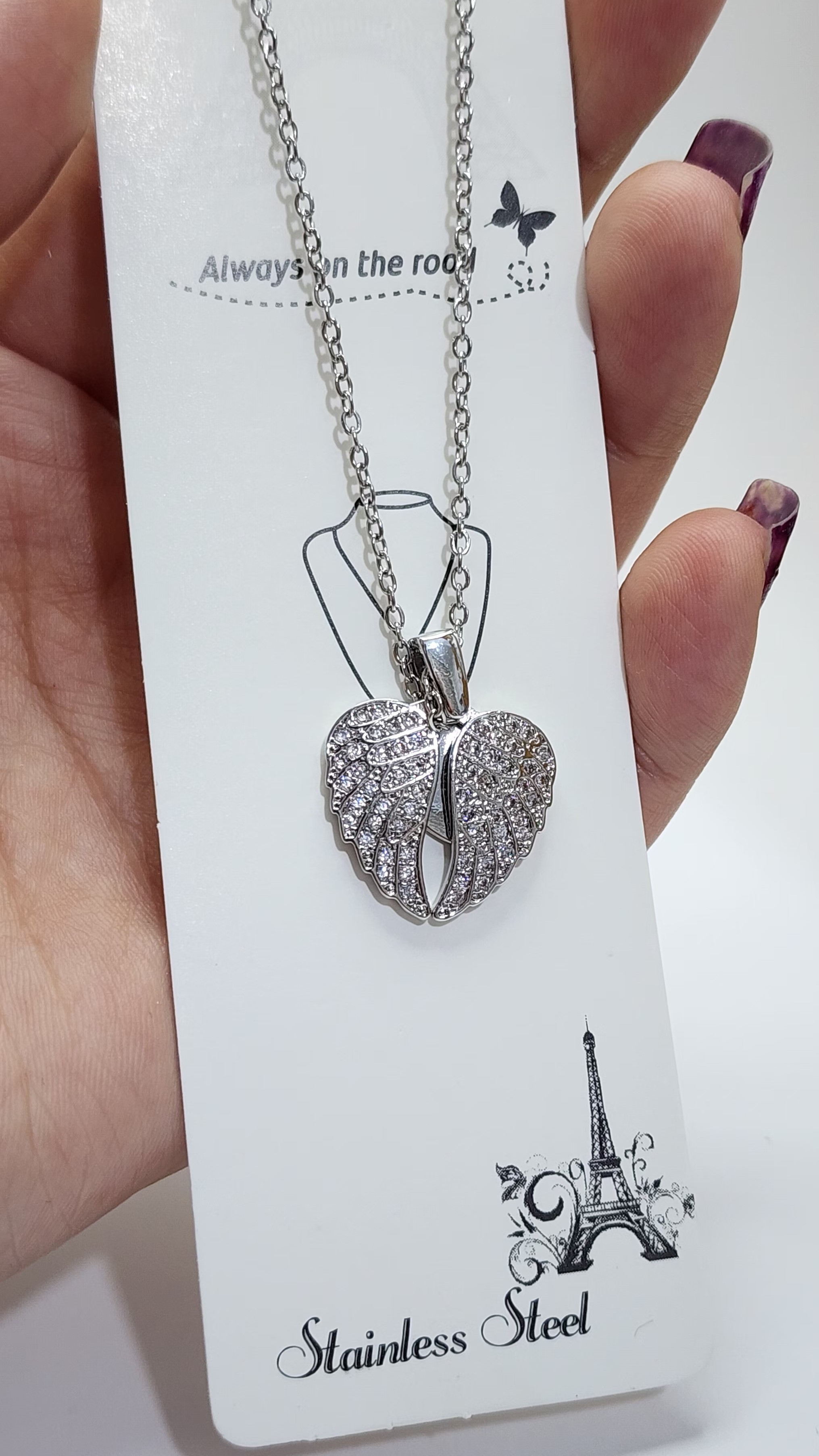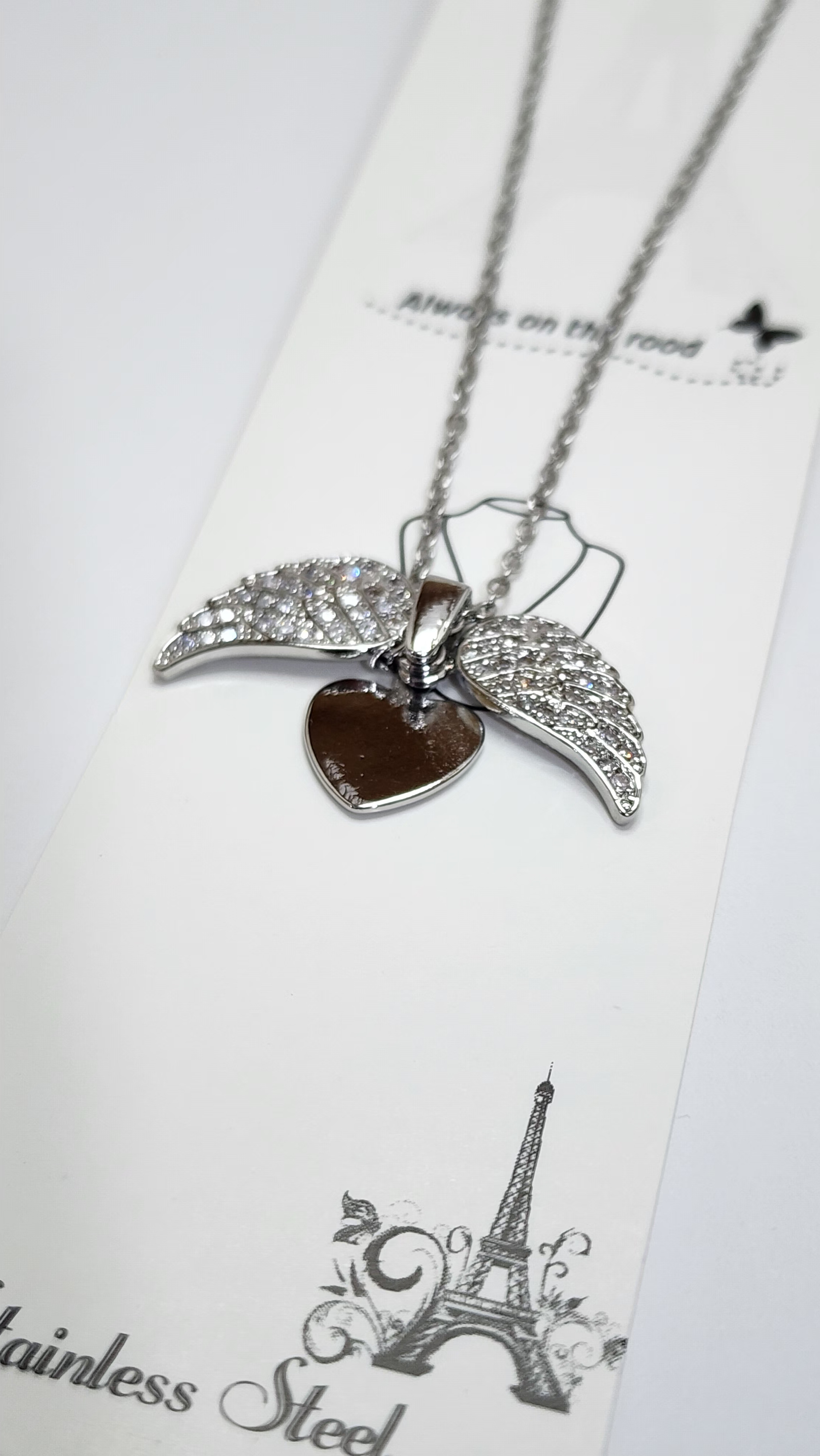 - بالهای نگیندار: دو بال که در دو طرف قلب قرار گرفته و با نگینهای درخشان تزئین شدهاند. این بالها قابلیت باز و بسته شدن دارند و به گردنبند جلوهای پویا و جذاب میبخشند.