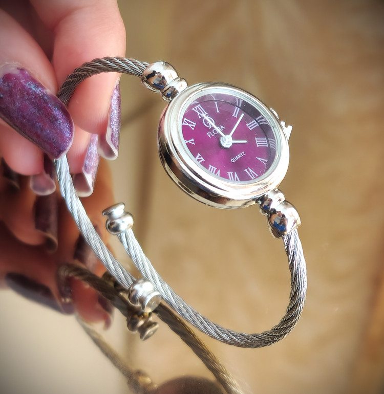 این ساعت مچی شیک بنگلی و صفحه نمایش بنفش، ترکیبی از زیبایی و کارایی را ارائه میدهد. صفحه نمایش با شمارههای رومی و طراحی ساده و مدرن، به هر استایلی زیبایی خاصی میبخشد. بند فلزی با بافت سیمی، علاوه بر راحتی، دوام بالایی نیز دارد و برای استفاده روزمره یا مراسم خاص مناسب است.